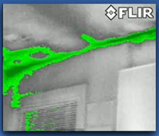Where the bx series differs, is their temperature range and sensitivity. The temperature ranges on the bx cameras are smaller but the sensitivity is greater. This means that the range is specifically tuned to the ranges you will find in homes and buildings but the greater sensitivity will show you smaller differences in temperature, allowing you to more accurately gauge problems in a residential environment. When it comes to detecting moisture problems, even the smallest fraction of a degree can make a difference and the E Series bx cameras where created with this in mind. The bx cameras also feature an insulation alarm to show you voids in the existing insulation (shown in blue to the right) and a dew point alarm to locate hidden moisture issues (shown in green to the right).